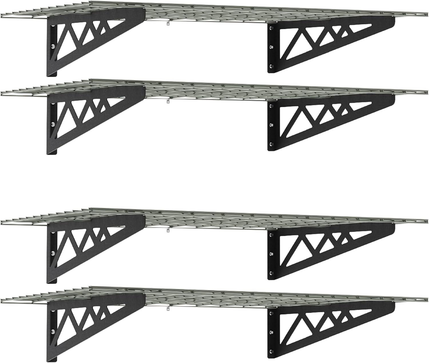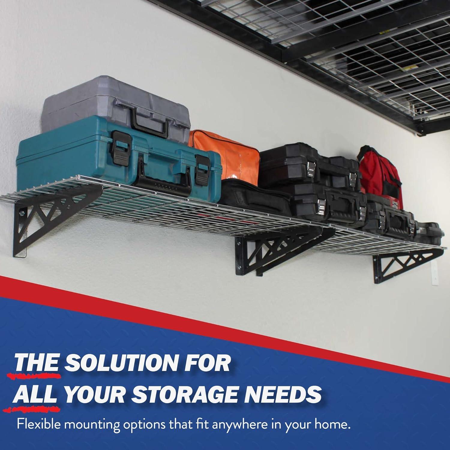 CONVENIENT STORAGE SPACING: Innovatively designed to provide a clean and neat space for your utilities and accessories, our wall-mounted garage shelving units will save you space and help you organize items like golf clubs, storage bins, sports accessories, or bicycles.