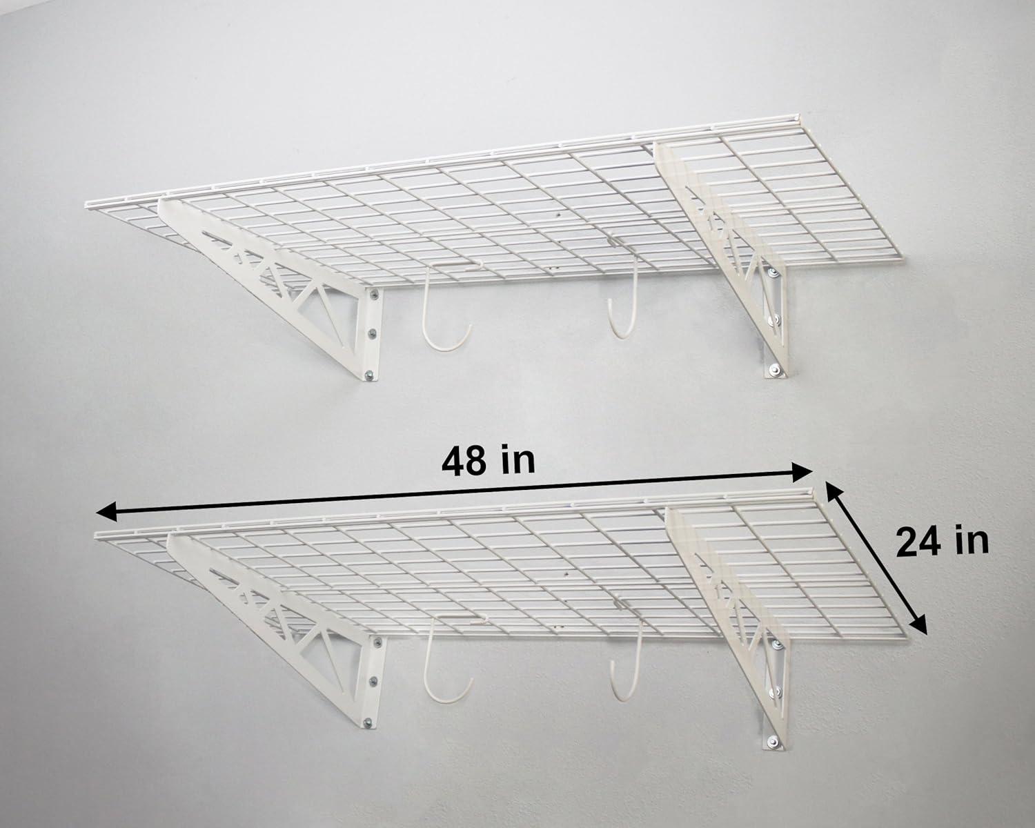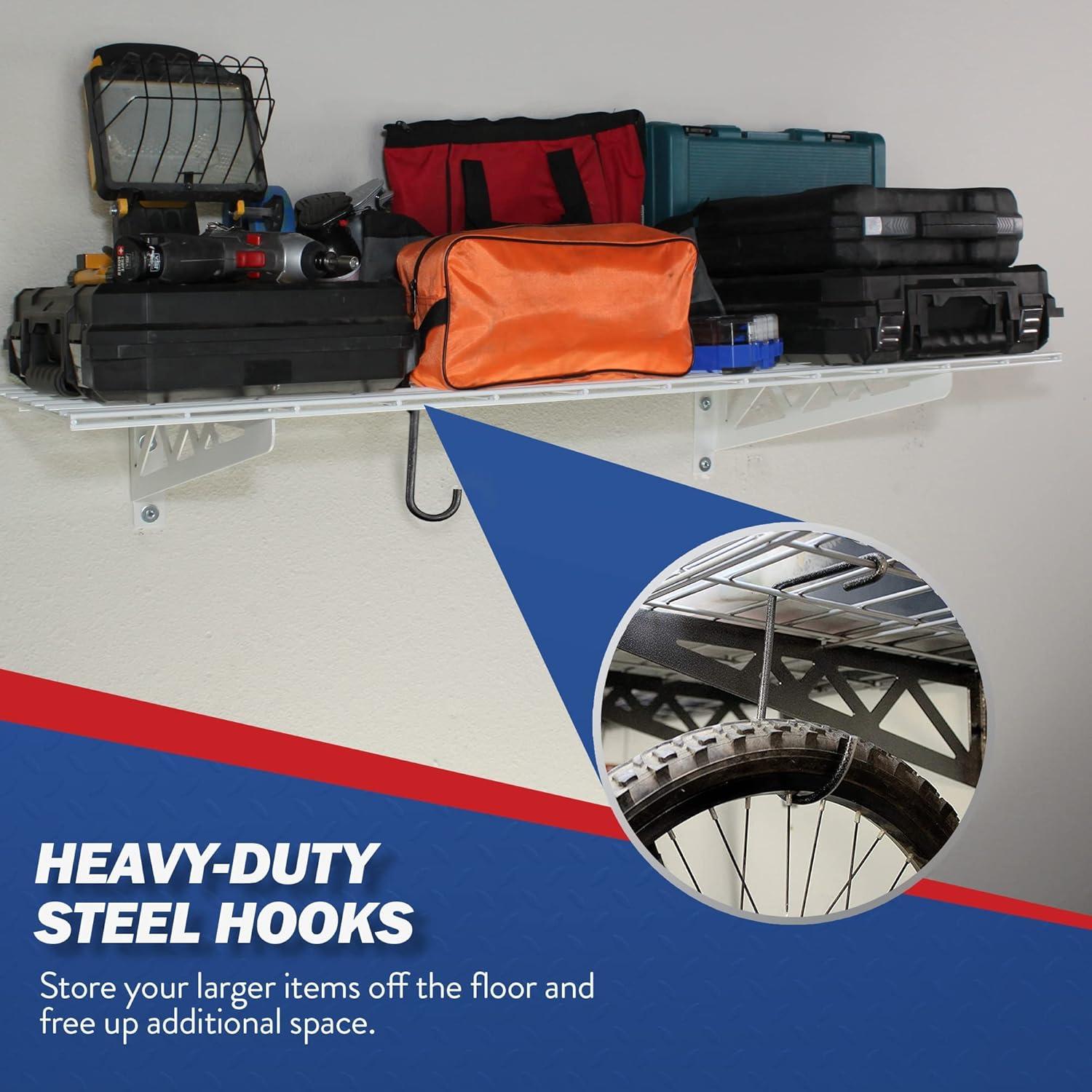 MULTIFUNCTIONAL UTILITY RACK: Each pack includes (2) wall shelves and (4) versatile deck hooks that allow you to use them in many ways. Use them as storage racks and shelving in your basement, garage, pantry, or laundry room, and confidently hang your bicycle, golf accessories, canned goods, or yard tools and more to gain usable floor space.