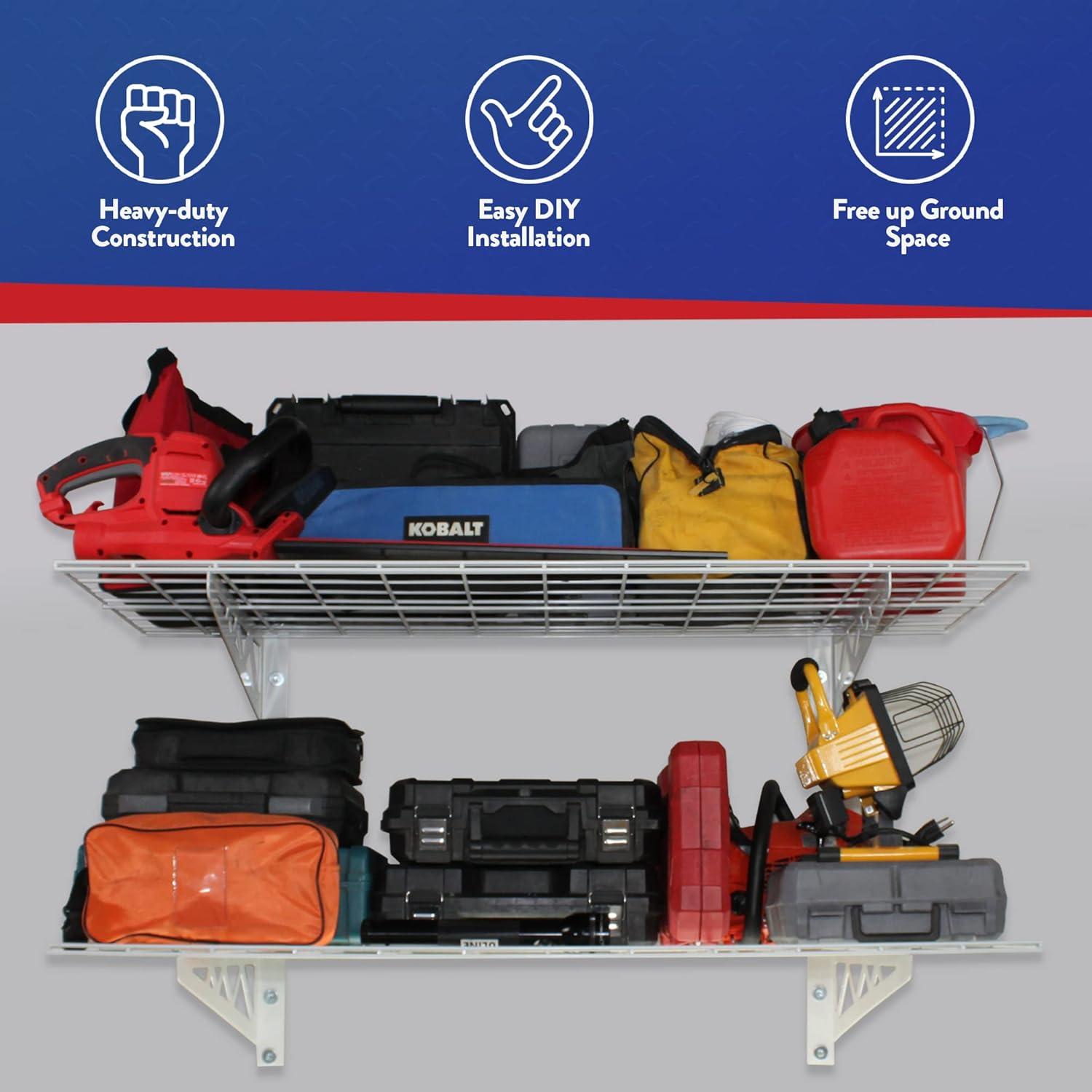 CONVENIENT STORAGE SPACING: Innovatively designed to provide a clean and neat space for your utilities and accessories, our wall-mounted garage shelving units will save you space and help you organize items like golf clubs, storage bins, sports accessories, or bicycles.