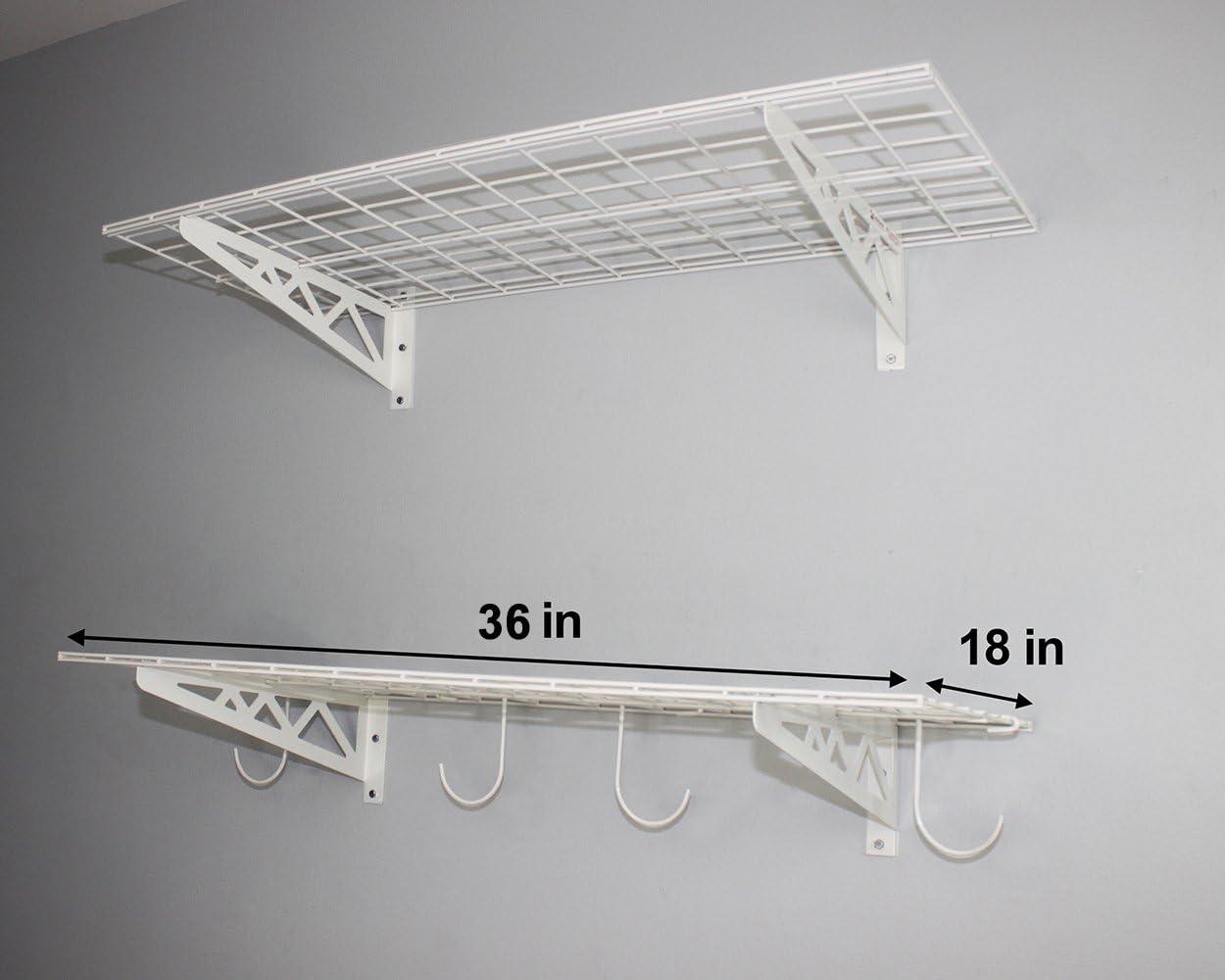 SafeRacks Garage Wall Shelves - 2-Pack 18"x36" Mountable Shelving Units for The Garage, Pantry or Utility Closet, Heavy Duty Steel Shelf with Bike Accessory Hooks, 500lb Capacity, Color: Hammertone(White)