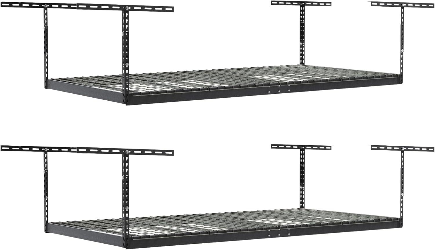 STURDY GARAGE RACKS FOR STORAGE: Our garage overhead storage racks combine industrial-strength steel, a powder coat finish, and a secure fastening system to bring you up to 120 cubic feet of storage per rack. The 14 gauge industrial steel C-Channel beams on our garage rack provide superior strength. You'll love the space our garage storage shelves will add to your garage!